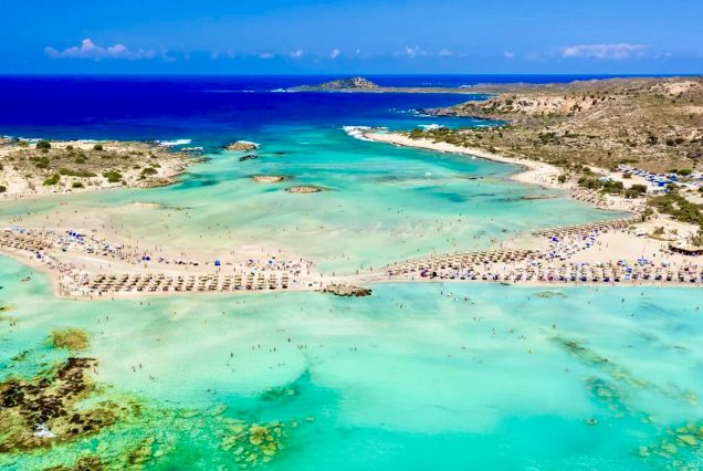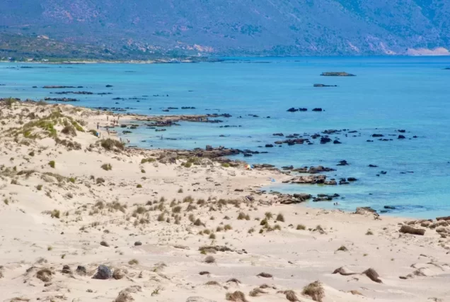 Découvrez la mer des Caraïbes en Crète. Elafonisi est une destination à couper le souffle, un véritable joyau de splendeur naturelle. Le paysage est rempli de dunes de sable, d’arbres bas, de buissons, de lys de sable et de genévriers. Vous pouvez facilement atteindre votre destination en marchant depuis la plage, en traversant les magnifiques eaux peu profondes dans les tons d’aigue-marine et de turquoise. Le sable blanc et rose, composé d’innombrables coquillages brisés, ainsi que les eaux claires bleu-vert, les criques isolées et les plages cachées, évoquent pour les visiteurs un paradis oublié depuis longtemps.