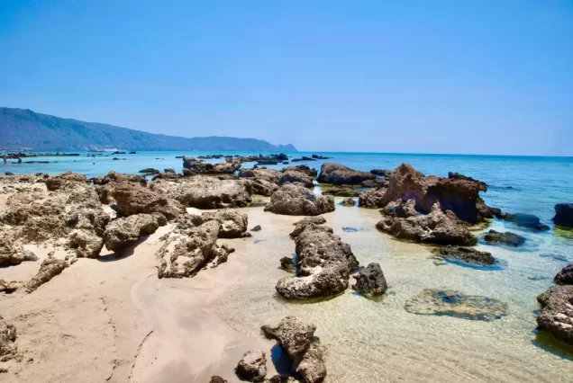 Nous explorerons un endroit étonnant et inattendu dans le coin sud-ouest de l’île. Elafonisi est une destination à couper le souffle, avec son emplacement unique qui nécessite une marche rafraîchissante dans l’eau pour y accéder.