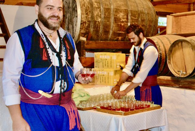 Savourez un vin exquis, plongez-vous dans les mélodies enchanteresses de la « Lyra » grecque et crétoise, et laissez-vous émerveiller par les costumes traditionnels éclatants portés par les danseurs, qui présentent avec grâce des danses folkloriques grecques et crétoises.