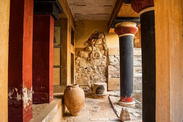 The palace corridors were known as the Labyrinth due to their intricate structure, which was said to be the former home of the legendary Minotaur according to myth. The palace of Knossos on Crete continues to captivate visitors with its incredible architectural plan, the incorporation of exquisite and opulent materials, the implementation of cutting-edge construction and drainage techniques, and its impressive scale.